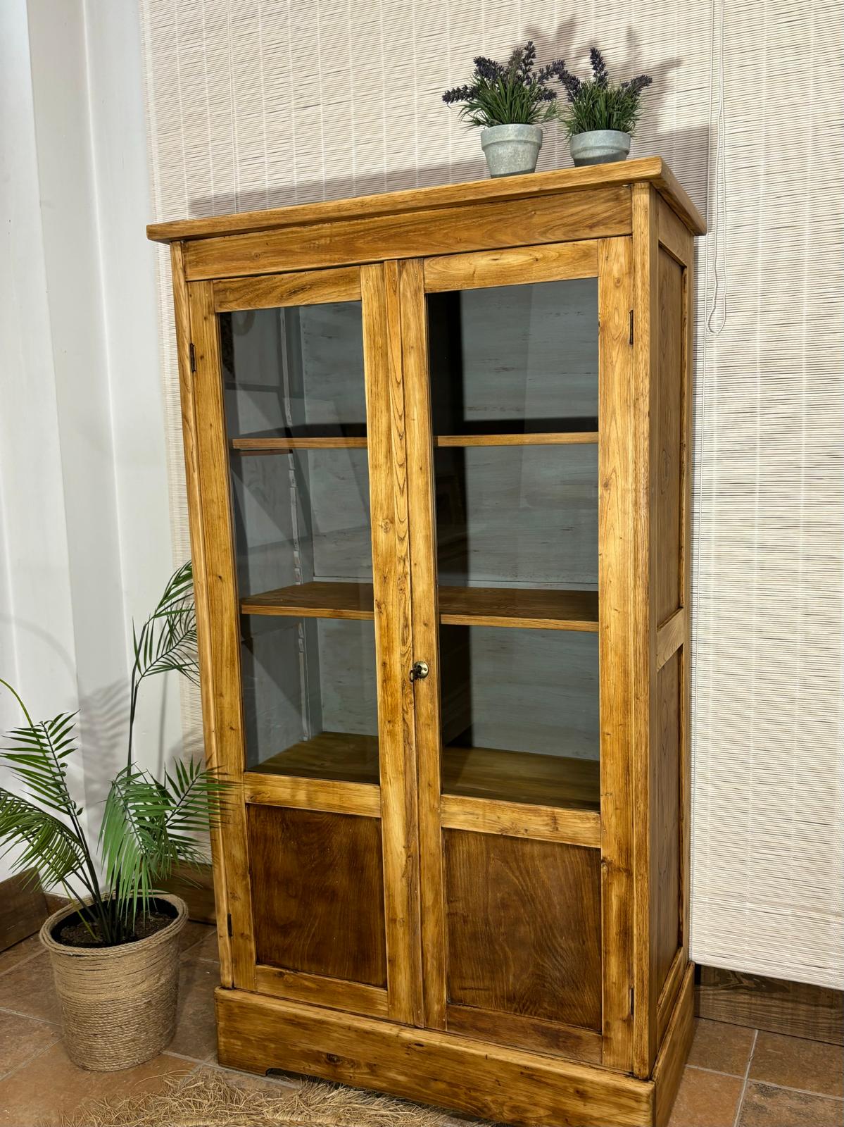 Esta alacena de madera es una verdadera obra de arte que encajará perfectamente con tu decoración. Sus puertas de madera antigua están divididas en tres paneles, siendo la parte superior de vidrio y la inferior de madera maciza. Esta alacena, tallada a mano, combina elementos del estilo rústico y vintage de una manera única. Acabada con barniz, interior blanco. Baldas ajustables a conveniencia. ¡Y lo mejor de todo! No solo su diseño es impresionante, sino que también ofrece una generosa capacidad de almacenamiento. Sus amplios compartimentos te permiten organizar tus objetos personales, vajilla o cualquier otro artículo que desees exhibir o guardar de manera ordenada. La parte superior de vidrio es ideal para mostrar tus piezas de vajilla fina o colecciones de objetos decorativos, mientras que la parte inferior de madera maciza es perfecta para almacenar artículos más pesados y voluminosos. La belleza de esta alacena va más allá de su aspecto exterior. Cada detalle ha sido cuidadosamente elaborado por artesanos expertos, lo que garantiza su durabilidad y resistencia a lo largo del tiempo. El barniz aplicado no solo realza la belleza de la madera, sino que también la protege de arañazos y daños. Las baldas ajustables te brindan la flexibilidad de adaptar el interior de la alacena según tus necesidades cambiantes. Ya sea que desees exhibir tus libros favoritos, organizar tu cristalería o guardar tus utensilios de cocina, esta alacena te ofrece la versatilidad que necesitas. En resumen, esta alacena de madera es mucho más que un simple mueble de almacenamiento; es una pieza de arte funcional que añadirá elegancia y encanto a tu hogar. Su diseño único, su capacidad de almacenamiento y su calidad artesanal la convierten en una elección excepcional para cualquier espacio de tu casa. ¡No esperes más para agregar este toque de sofisticación a tu decoración!